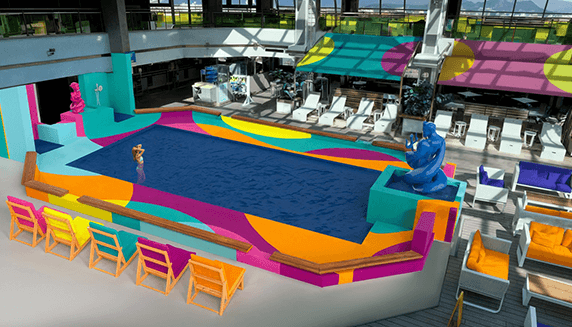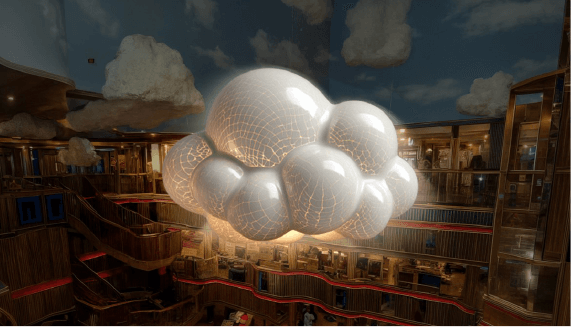 玻璃穹頂緩緩開啟,海風攜著光影鋪滿整片甲板。白天,擁抱泳池與按摩池的溫度;夜幕低垂時,星空成了最浪漫的銀幕,一部電影、一段笑語,假期從未如此閃耀。